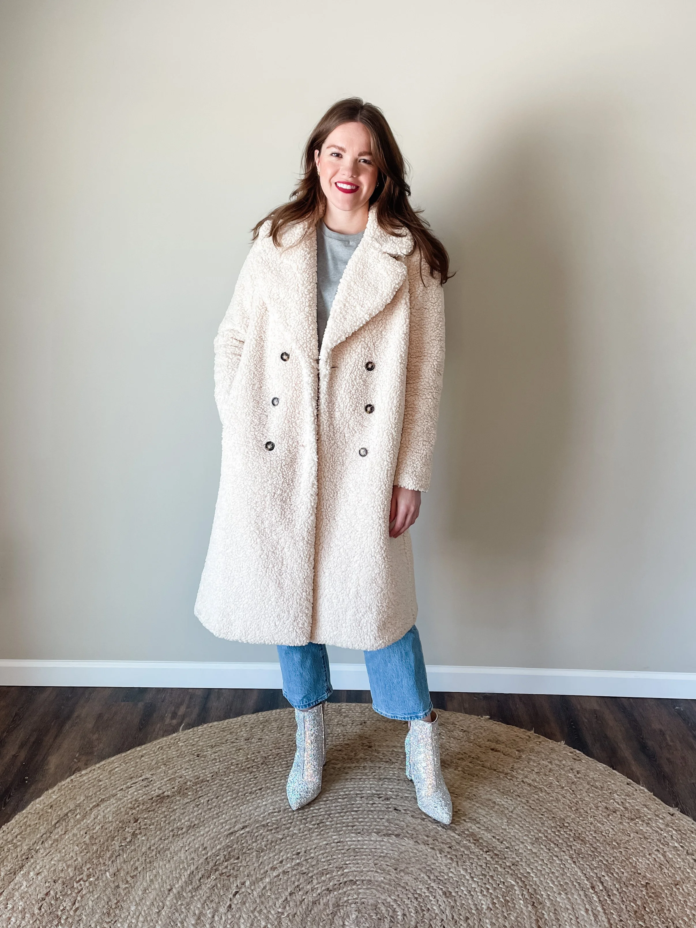 I have wanted a teddy coat for years! YEARS! I was a bit worried that getting one now would be on the back end of the trend, but now that I own it I don’t really care if this trend goes away. Originally, I wanted one in camel, but this season they tended to lean a bit too orange for my liking, and this cream version is like no other coat I have in my closet. I’ve worn it out with girlfriends, and over a matching sweatsuit to run errands.