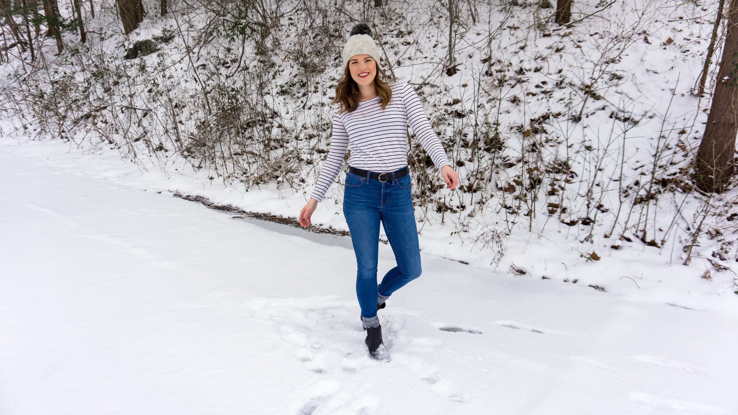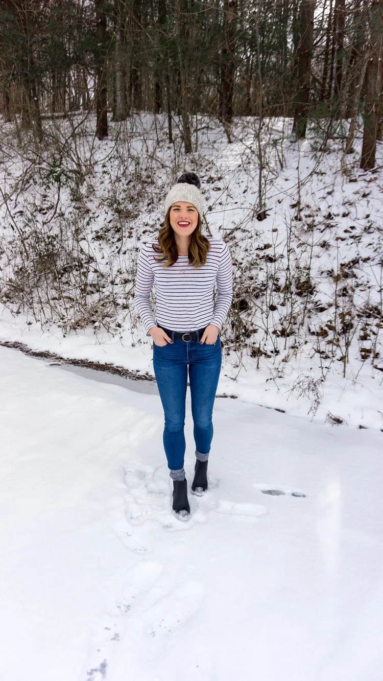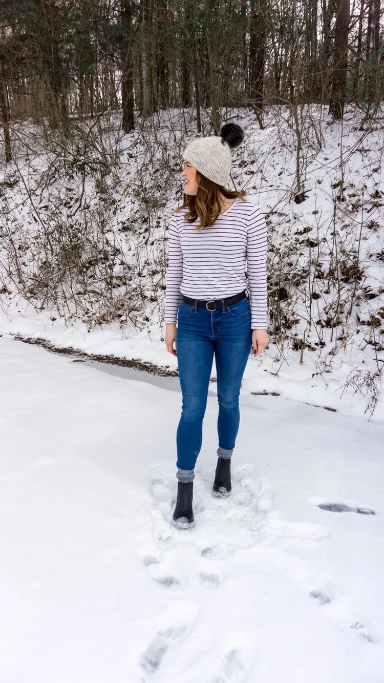 If you’re new to tucking your shirt, this is the best option for you. To achieve this look, tuck just the front center of your shirt and leave the rest of your shirt untucked. It’s a great way to define your waist without making it the focal point of your outfit. I love this option for almost anything - simple t shirt, oversized sweater, or long button down.