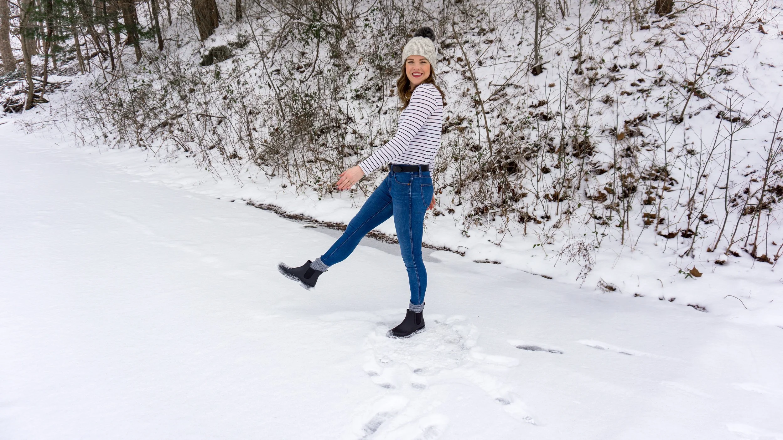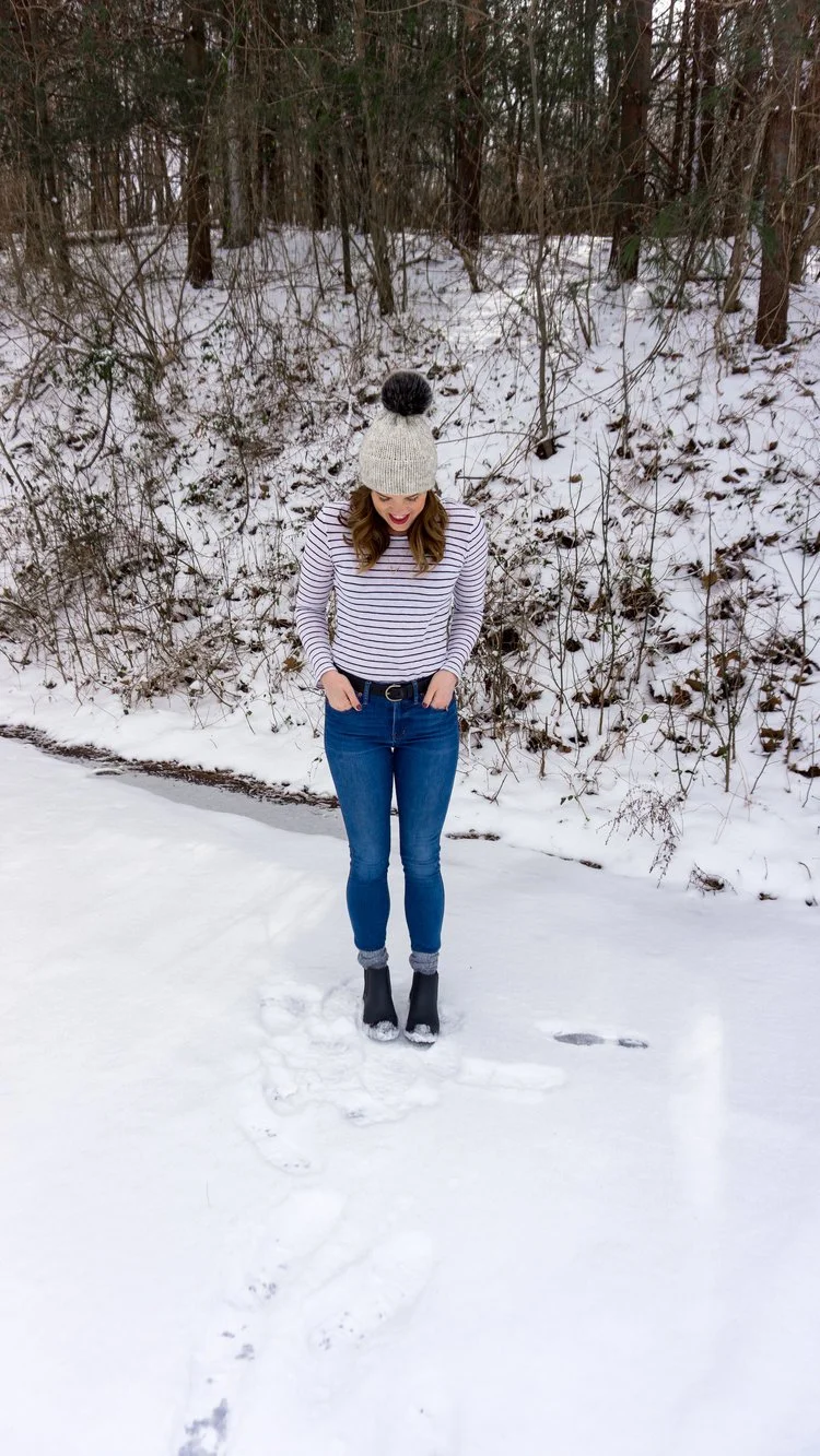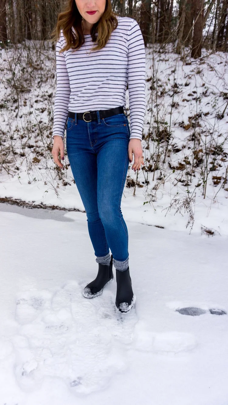 If you’re new to tucking your shirt, this is the best option for you. To achieve this look, tuck just the front center of your shirt and leave the rest of your shirt untucked. It’s a great way to define your waist without making it the focal point of your outfit. I love this option for almost anything - simple t shirt, oversized sweater, or long button down.