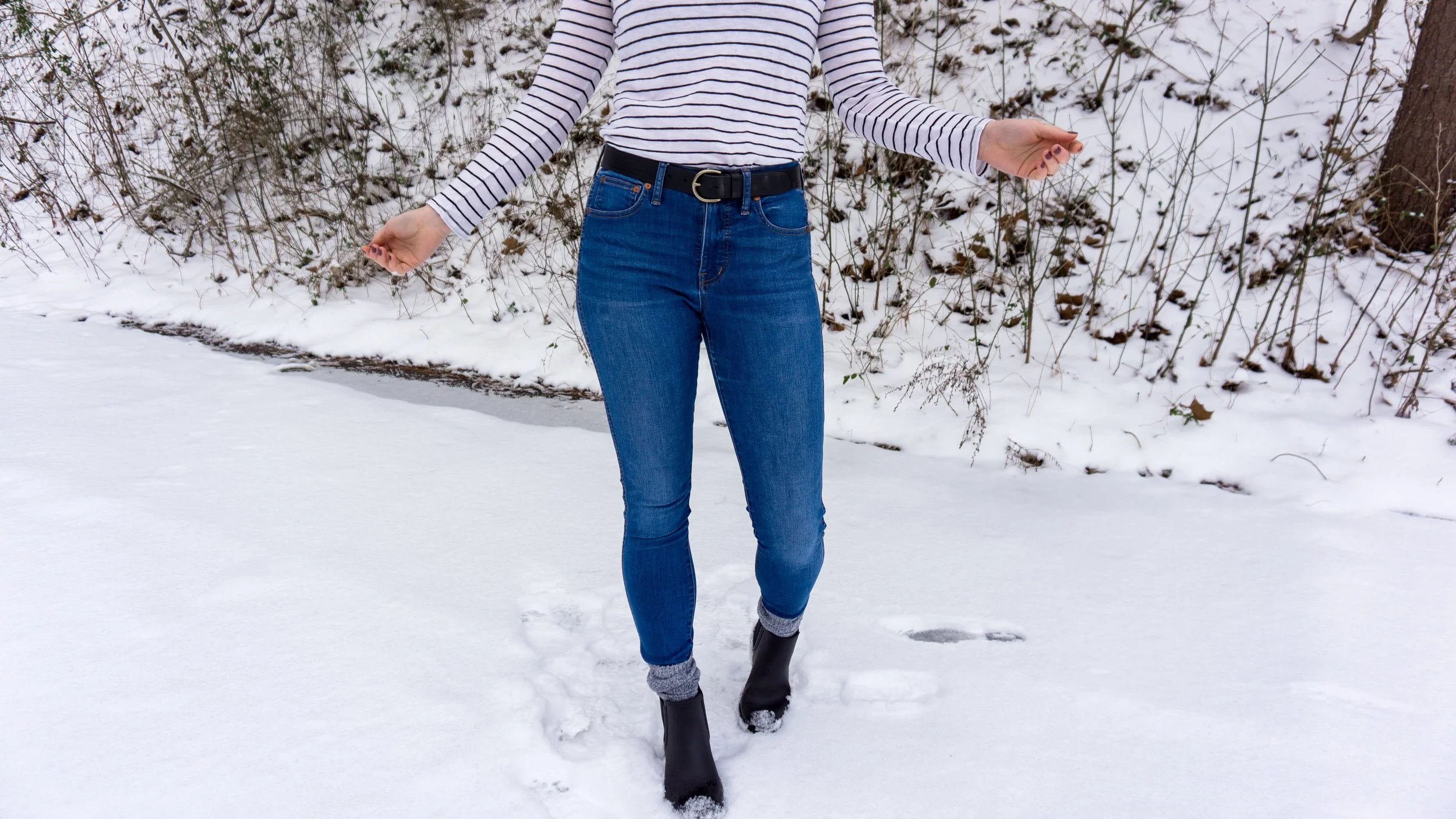 Tucking in your shirt in all the way can feel a bit 90’s family photo at times, but if executed properly can make a outfit look polished. To achieve this look, tuck your shirt in all the way and raise your arms above your head like you would at your favorite concert to achieve the perfect amount of untuck. Voila, the perfect full tuck.