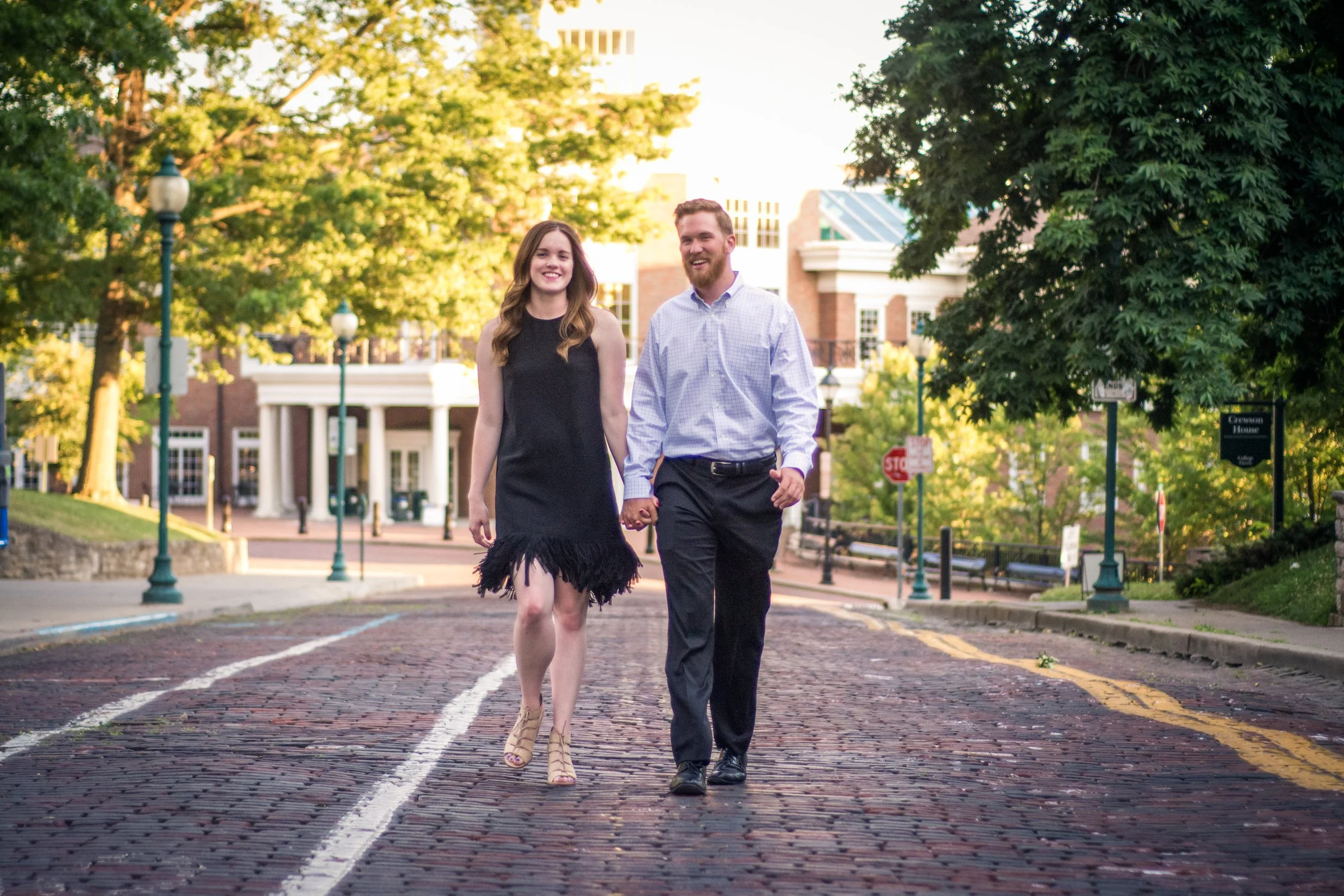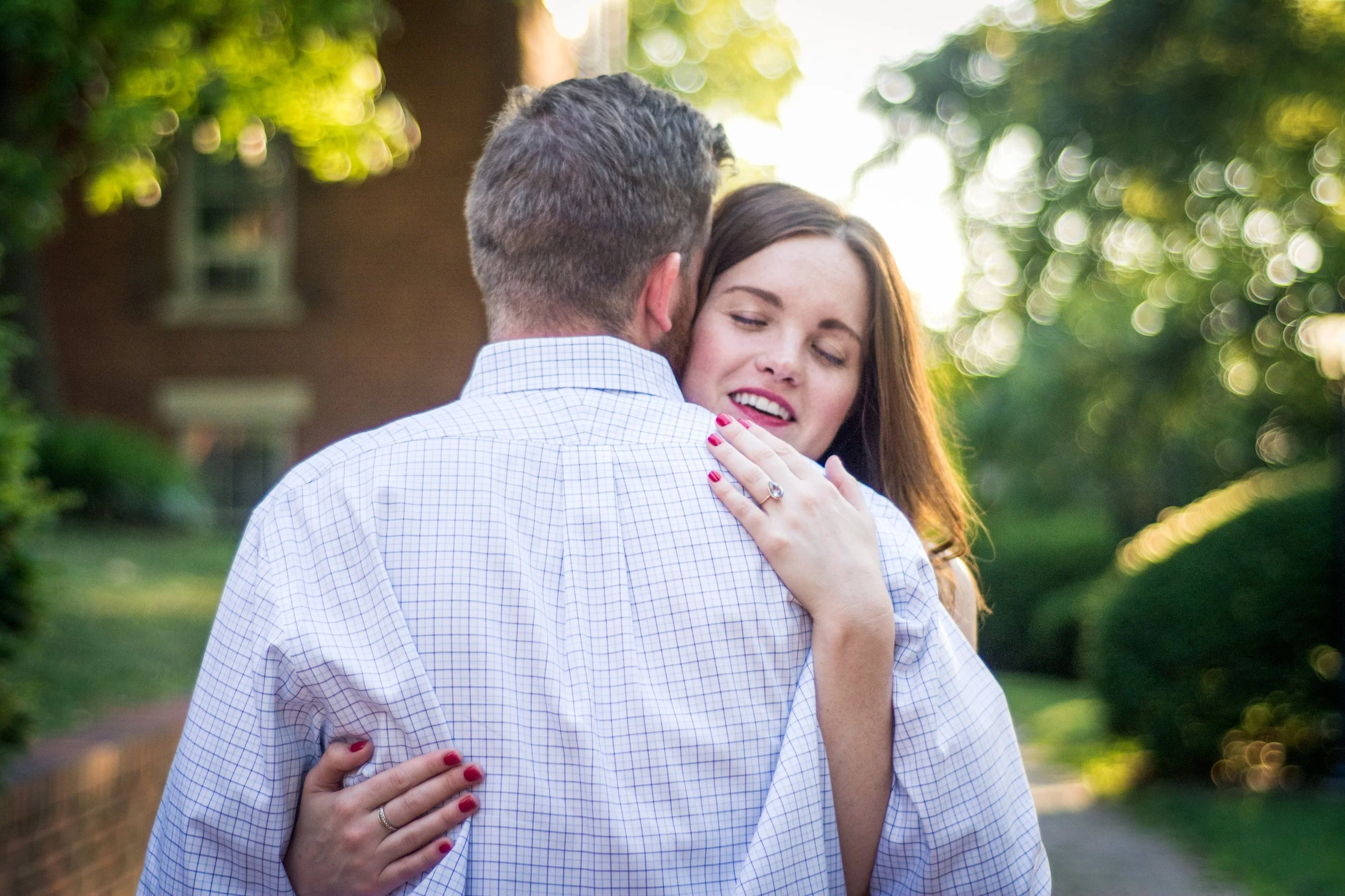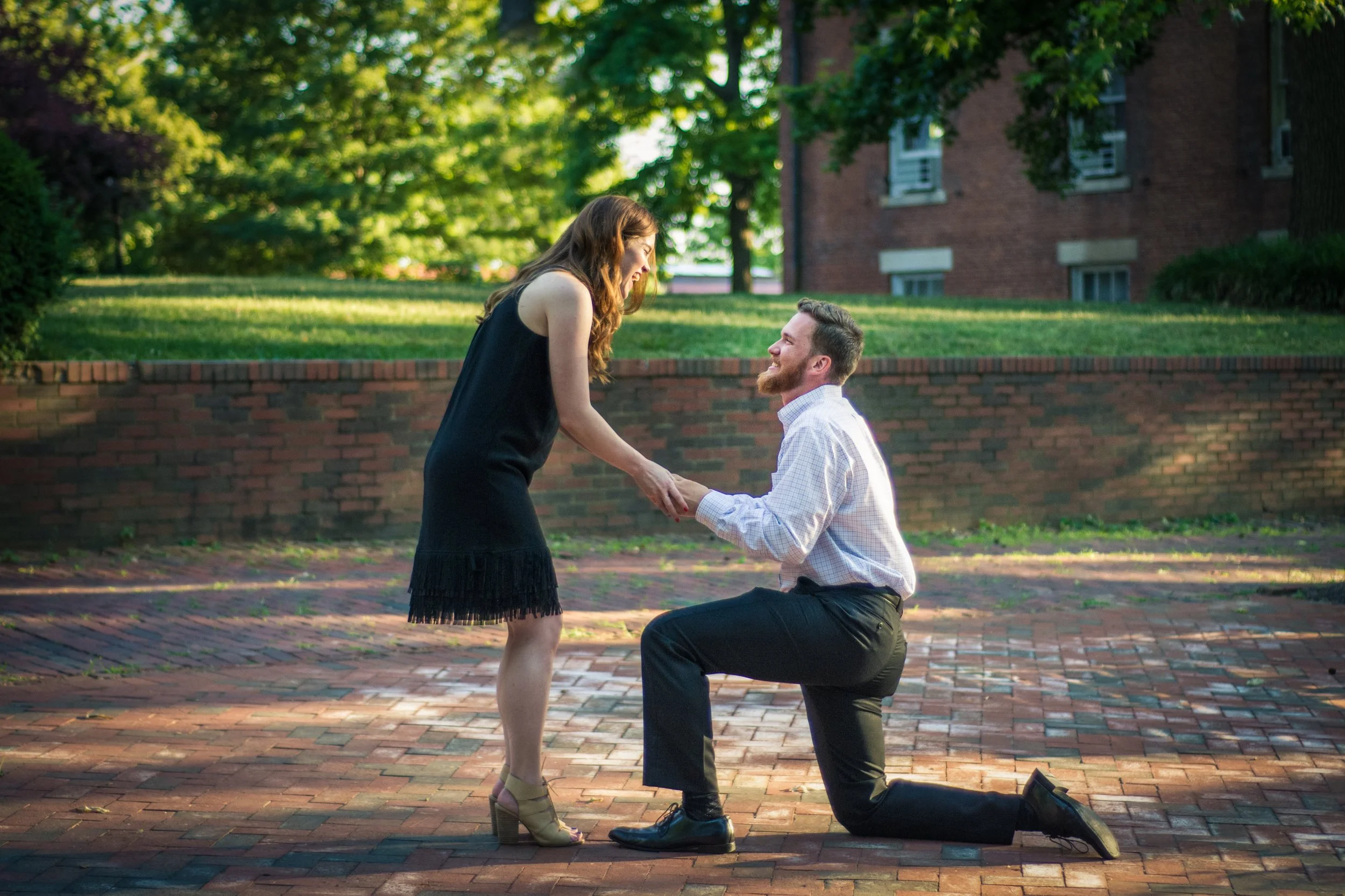 As we left dinner I suggested we walk through campus (toward the pre-planned engagement site) to enjoy the beautiful evening. By this point I thought Lindsae was on to me. I was nervous and couldn’t think of the right kind of small talk, so we quietly walked toward the main quad of campus. When we reached the spot I had coordinated with the photographer I dropped down to one knee and totally forgot everything I was going to say. Lindsae says she blacked out too. I remember she shook her head “Yes” and covered her mouth as she smiled and cried.