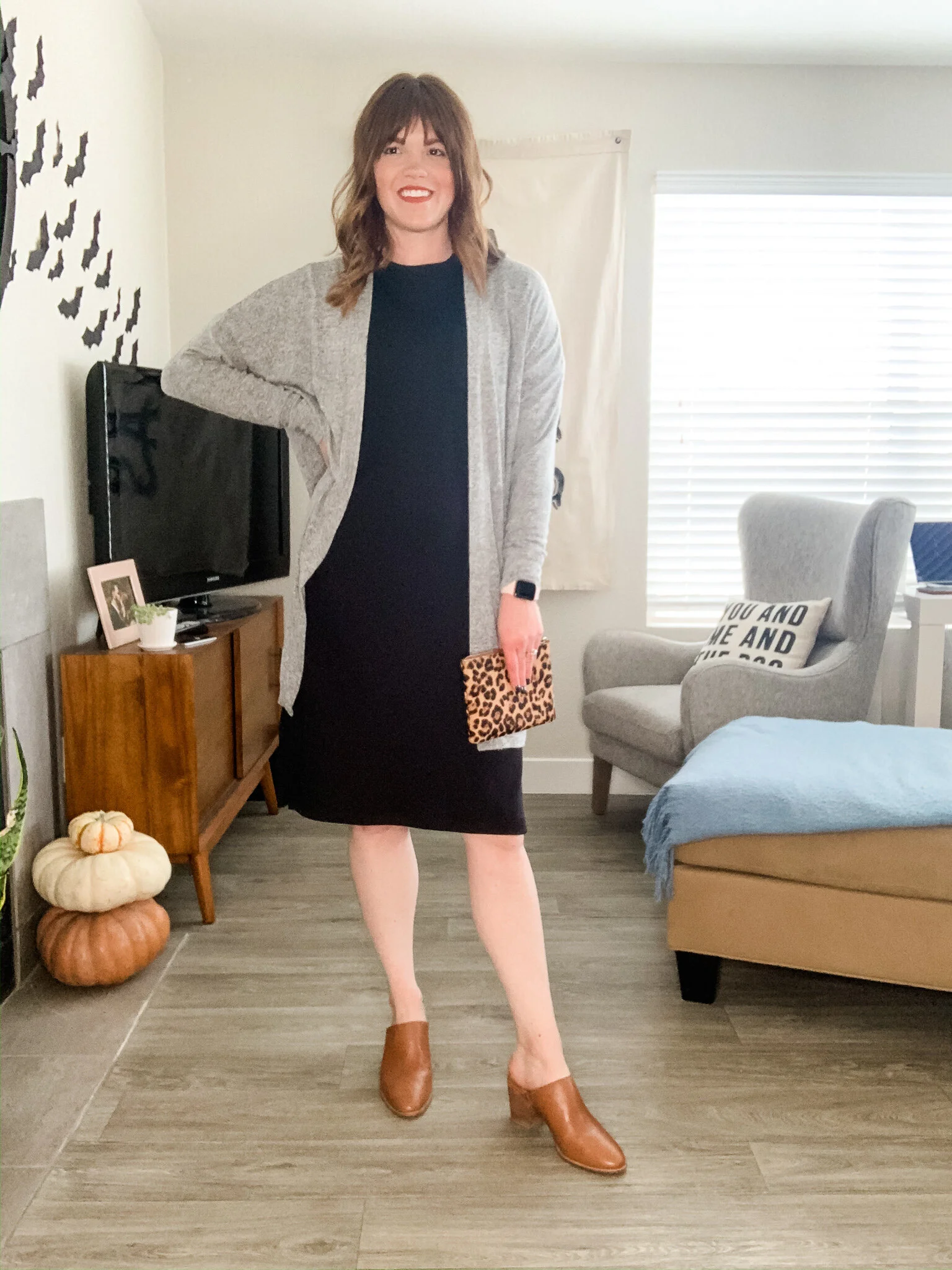 I recently identified a hole in my fall wardrobe with a black midi dress and I’ve been on the hunt for the last few weeks. I spotted this one and instantly knew it was what I was looking for. This dress is so comfy and the perfect length for fall! It is ribbed knit and I sized down to a small.