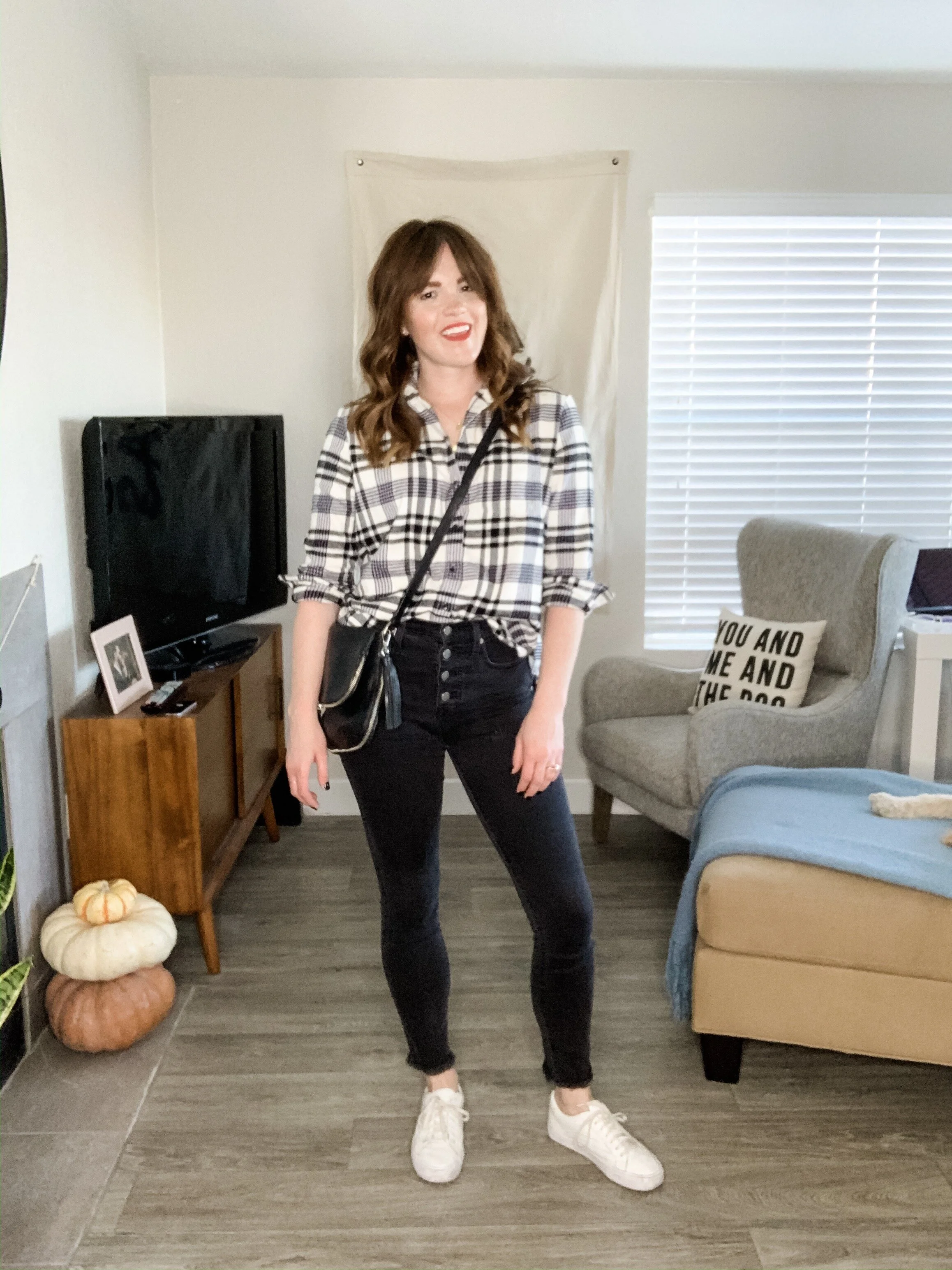 I love, love, love this look. Black and white is such an easy combo, and this flannel is just too good. I recently added it to my closet, but I see it being a staple for years to come with how soft it is and it’s versatility. This look is for a more casual gathering which is usually the dress code for my Thanksgivings. Come comfortable and ready to eat.