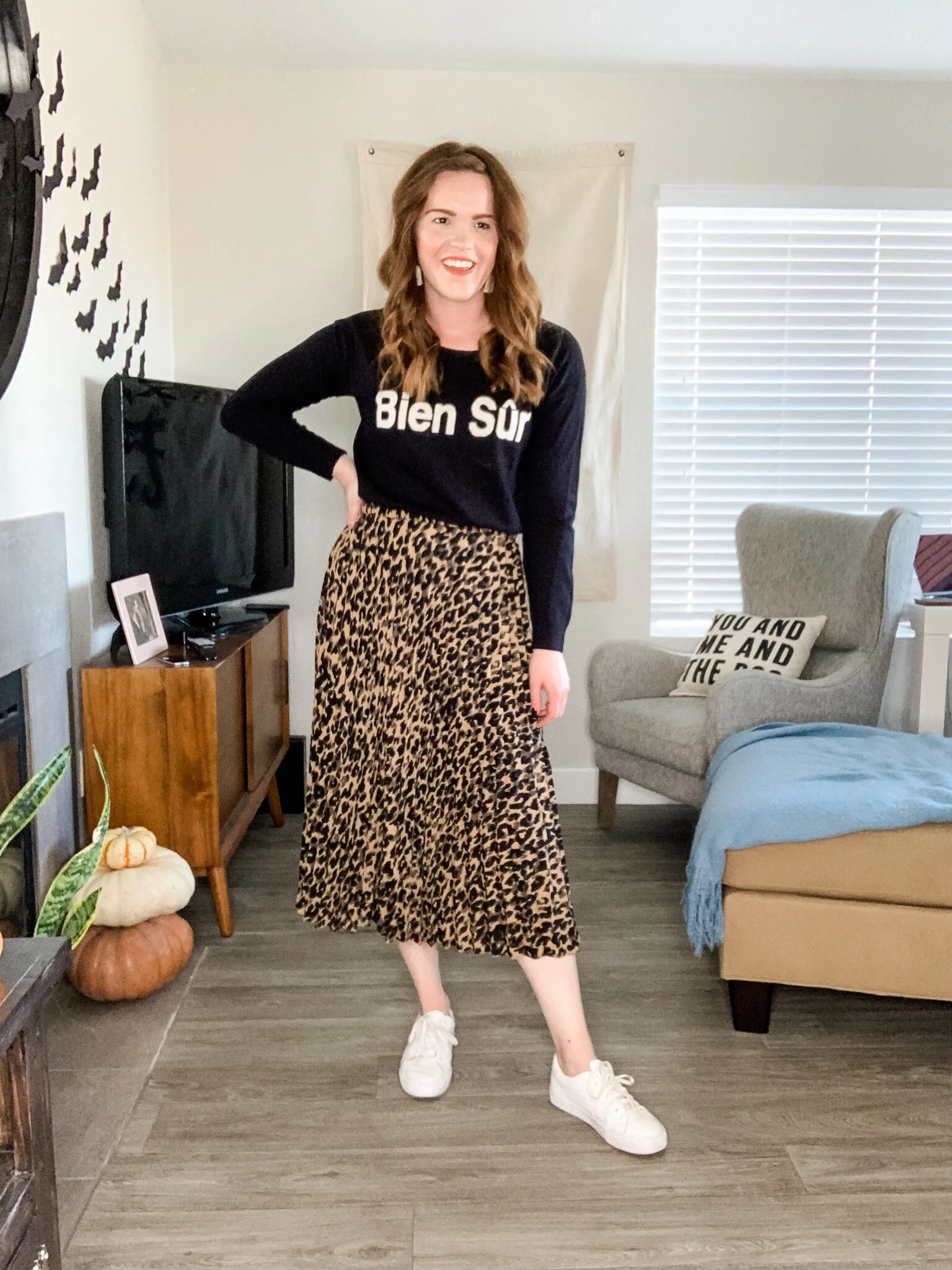 A couple of weeks ago, I spotted this leopard midi skirt knew I had to have it. I am a firm believer that leopard print is a neutral, so I knew this skirt would go with so many things in my closet.