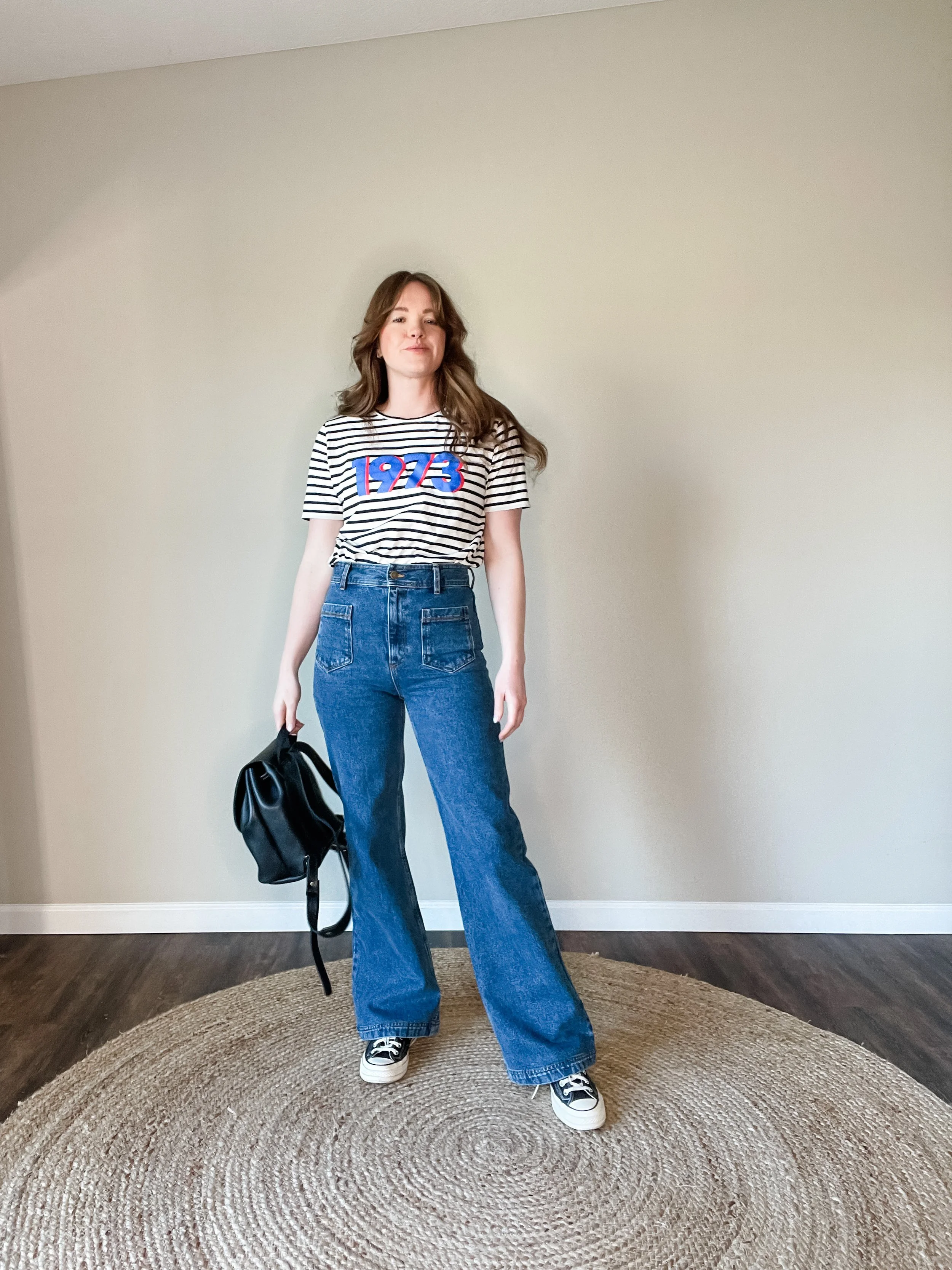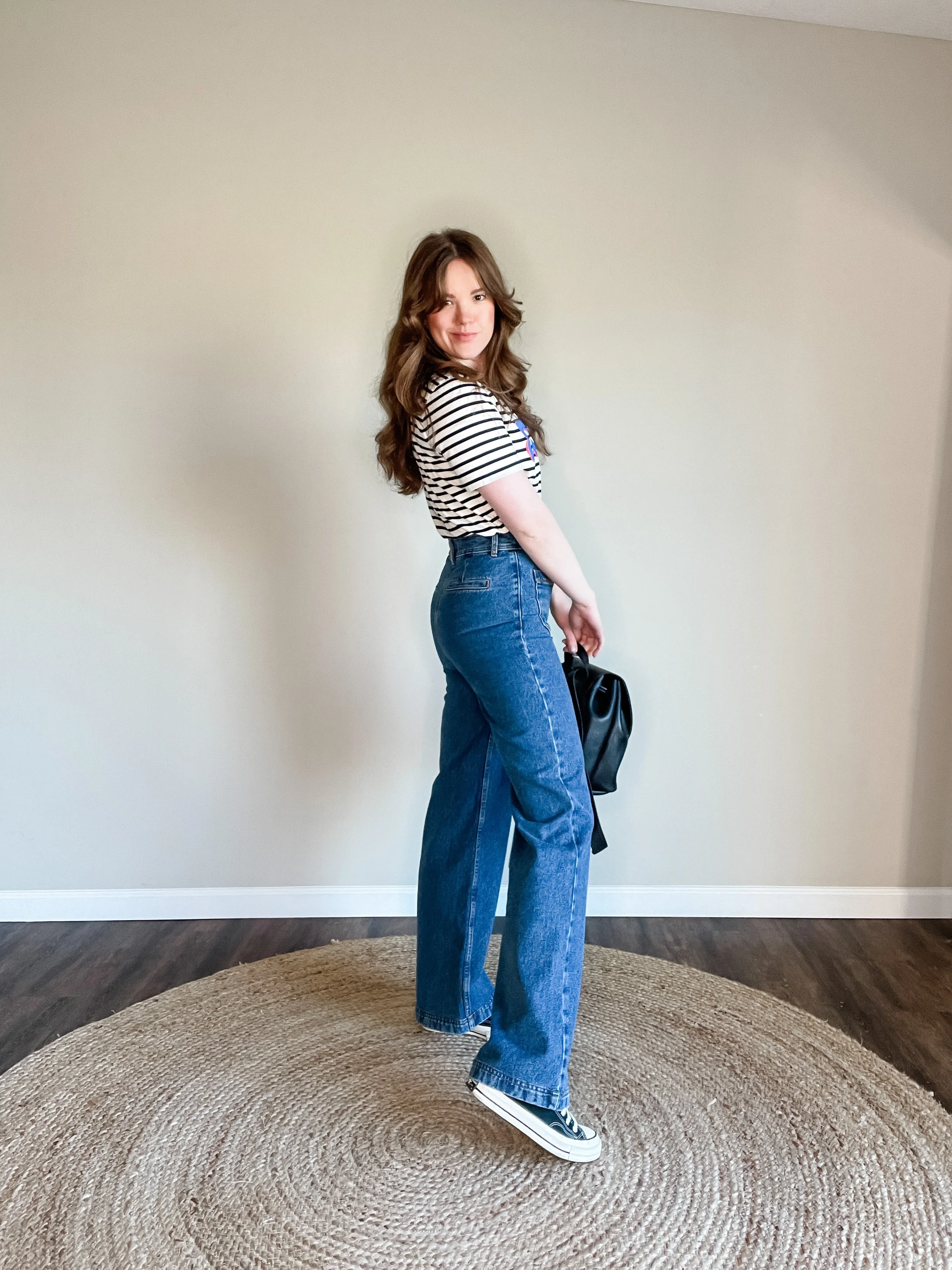 This feels like the way I will wear these trousers the most. I had them tailored to wear with chucks specifically. This outfit just feels most me. It’s comfy. It’s easy. We love her.