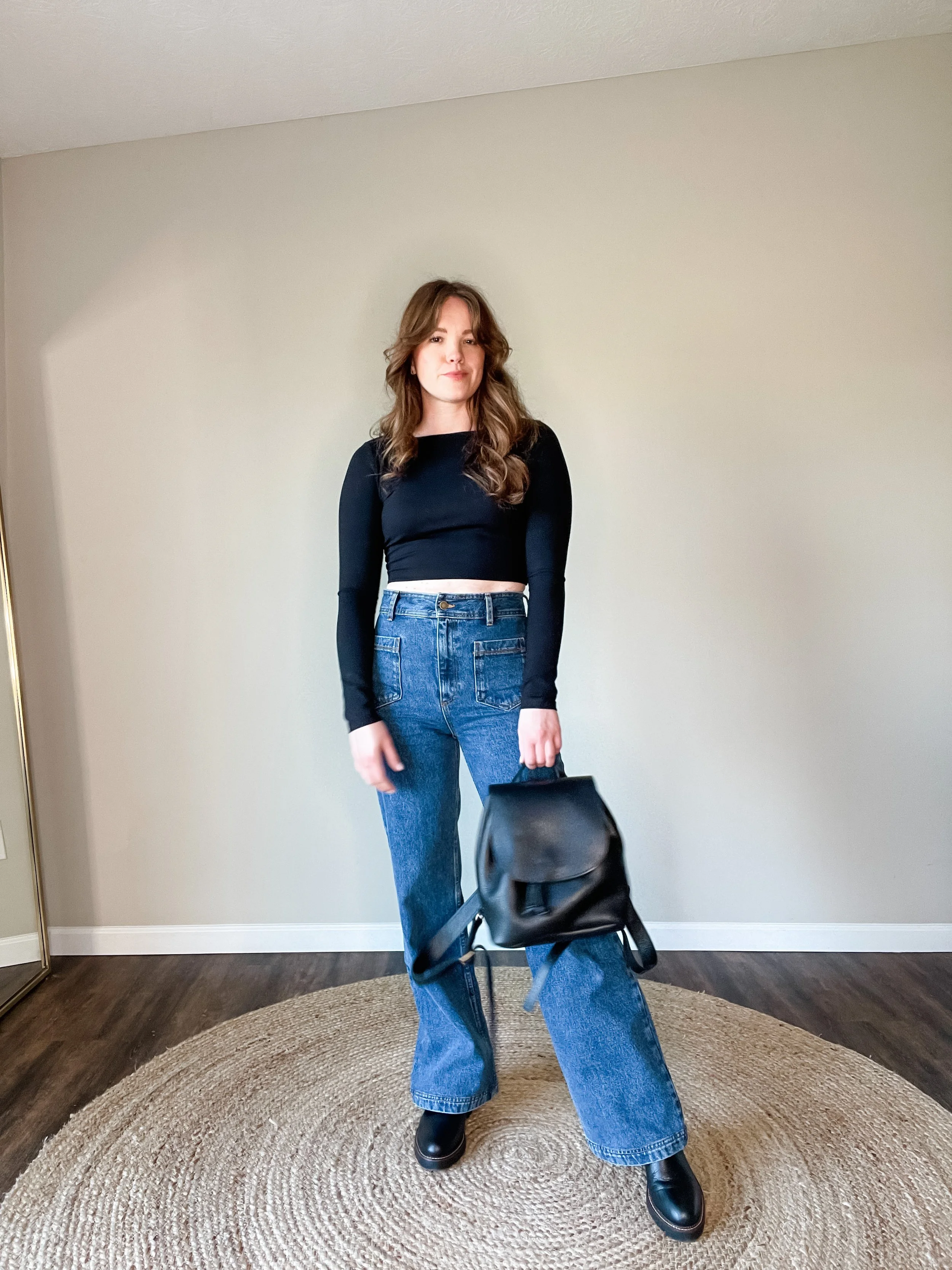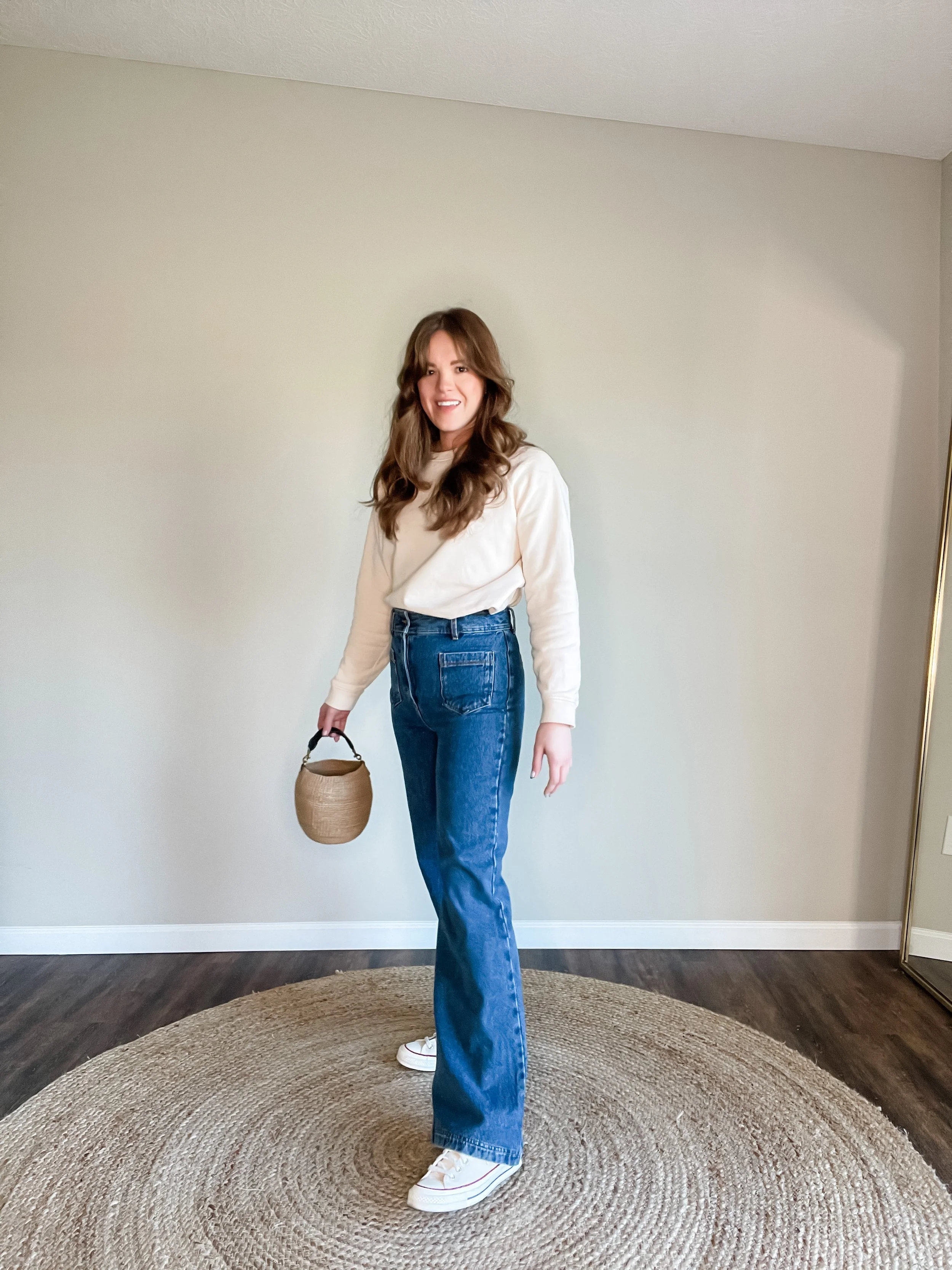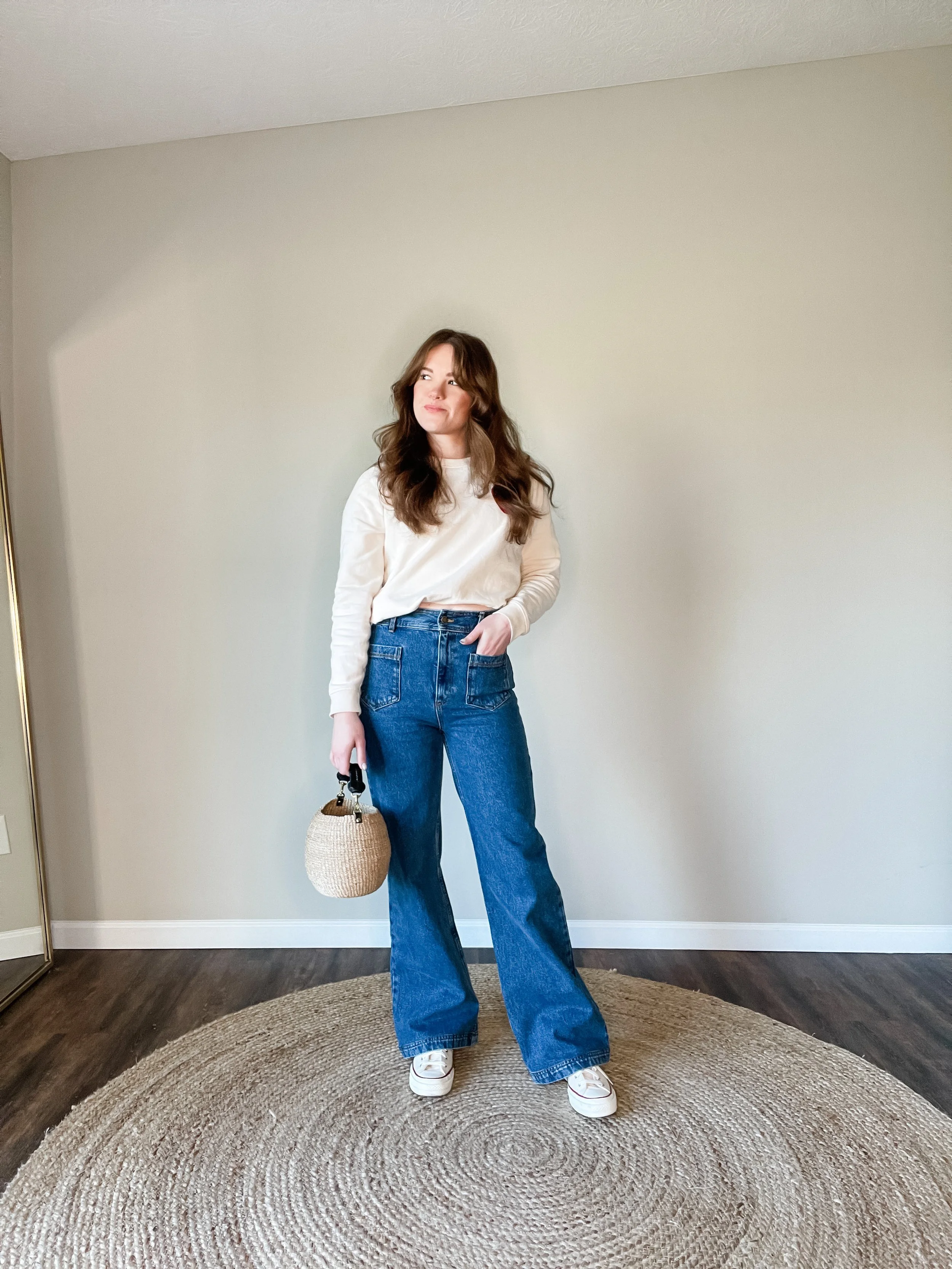 I love this look! I used the Crop Top Band to crop this sweatshirt. This feels very spring, but it’s still chilly where I live to me which is accurate for Ohio.