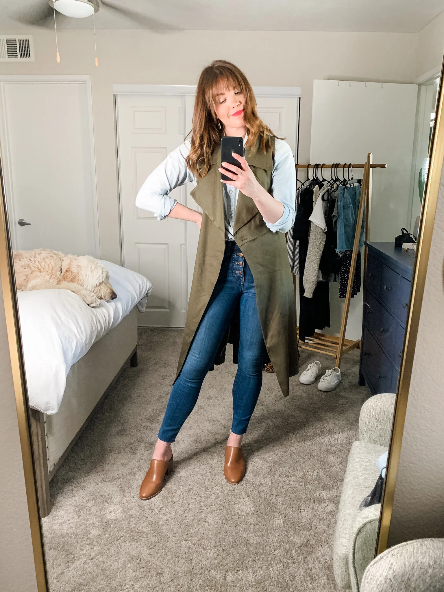 I purchased this long vest after seeing Conni with Art In The Find style hers and falling in love with how it pulls a look together. I truly feel so powerful and confident when I wear it, plus the olive color compliments my wardrobe so well. A long vest was not something that was originally on my shortlist of items I needed for my wardrobe, but I am here to tell you this piece should not be overlooked.